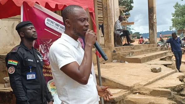HON GARIBA MOHAMMED, THE DCE FOR AKROFUOM TOURS THE DISTRICT